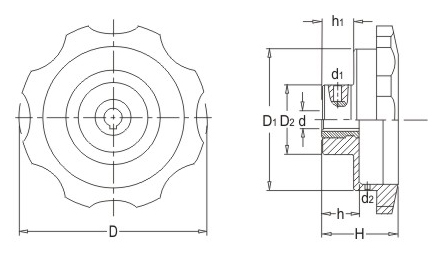 JS.105007 Sinuate dial handwheels Color: black Material: Phenolic resin (bakelite)??aluminium alloy Usage:Suitable for woodworking, food, packaging,printing machinery, precision reading instructions or adjust